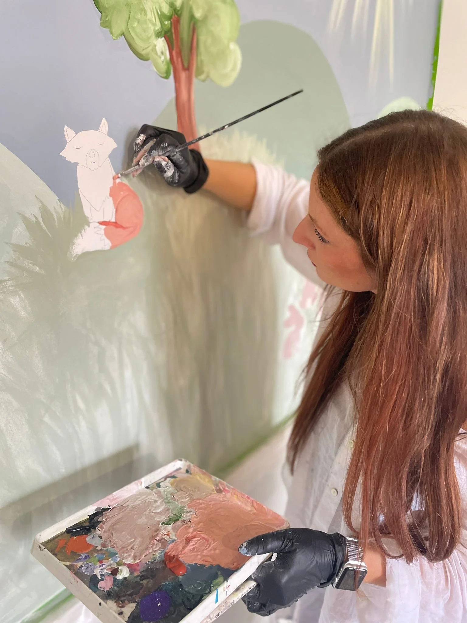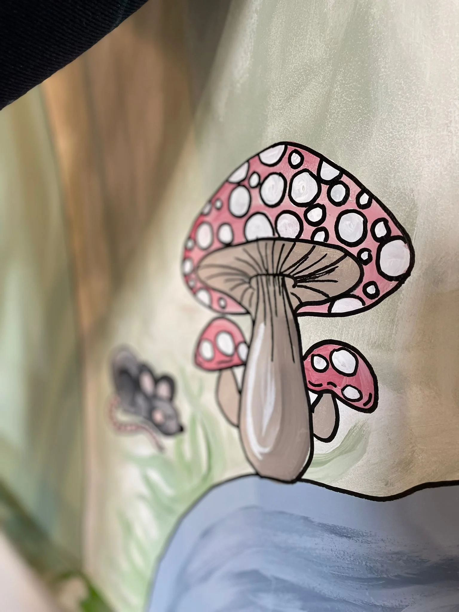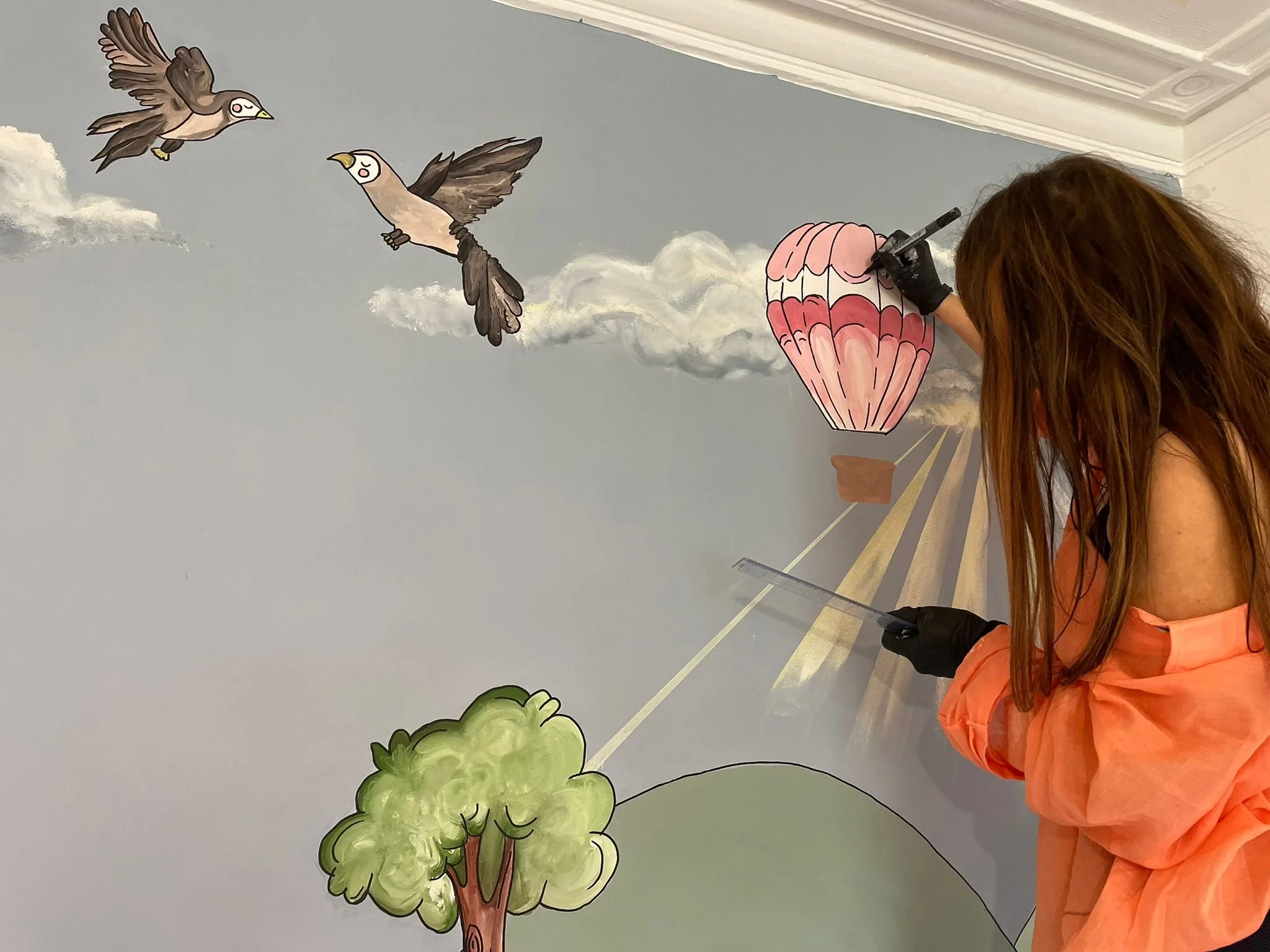 Mum of three boys wanted a special mural that was based on the colour schemes and styles of the boys favourite book.