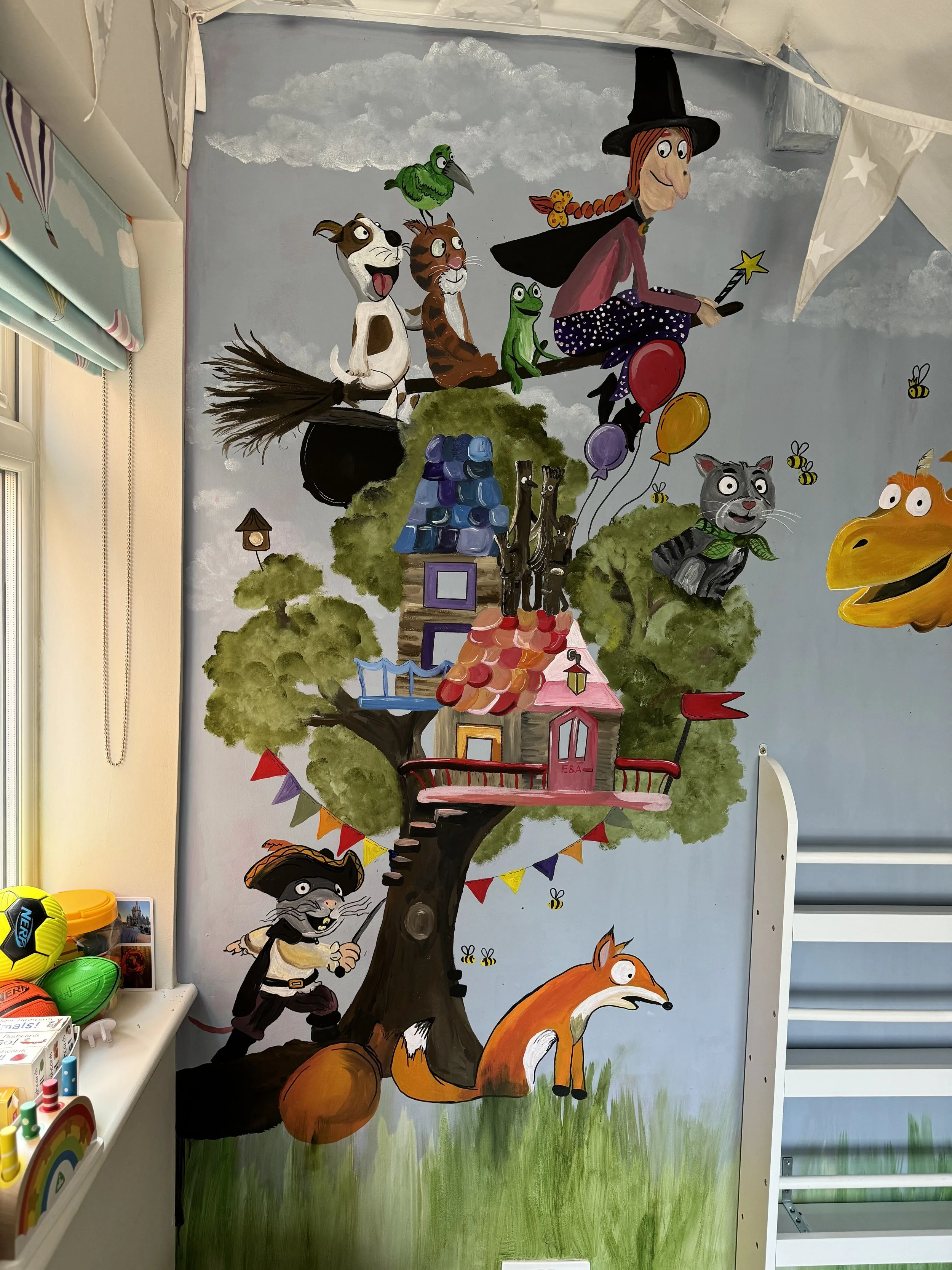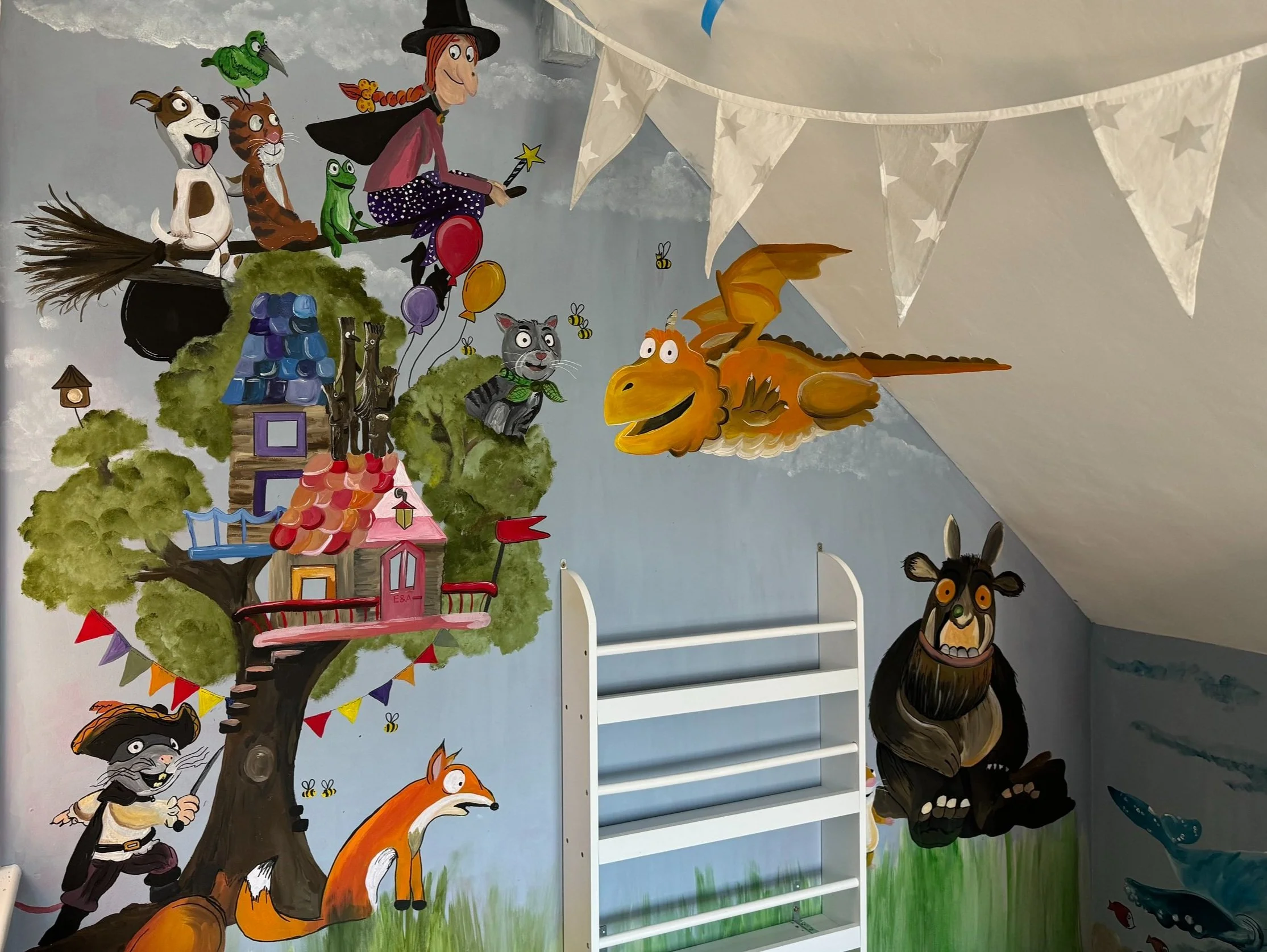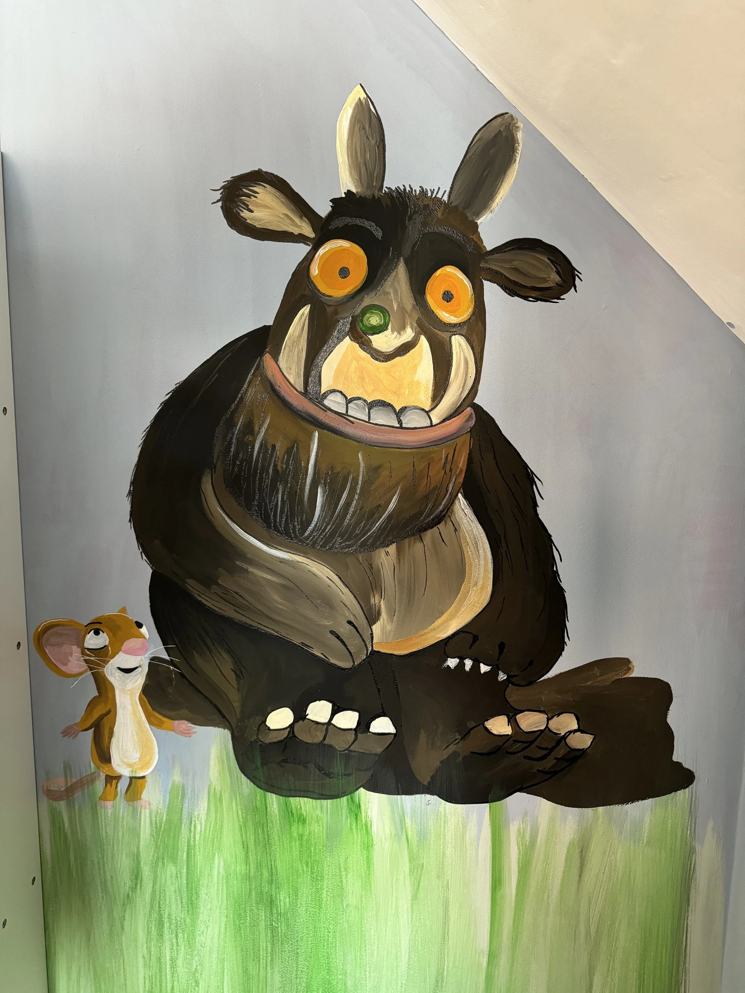 Julia Donaldson Playroom The vision was combining a mixture of the Julia Donaldson book characters to create a cute little reading nook for a child’s playroom