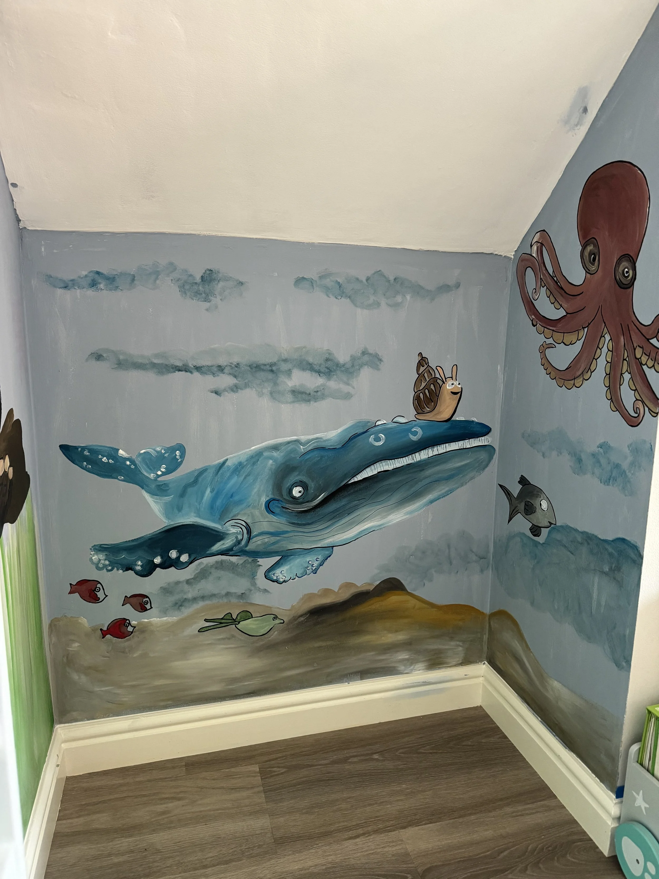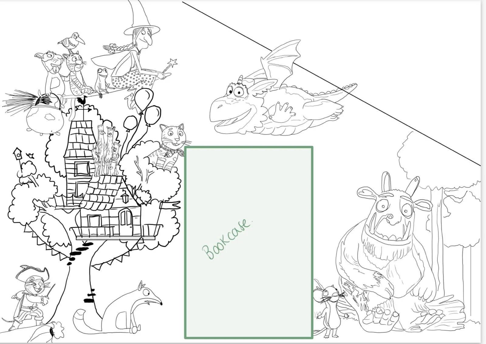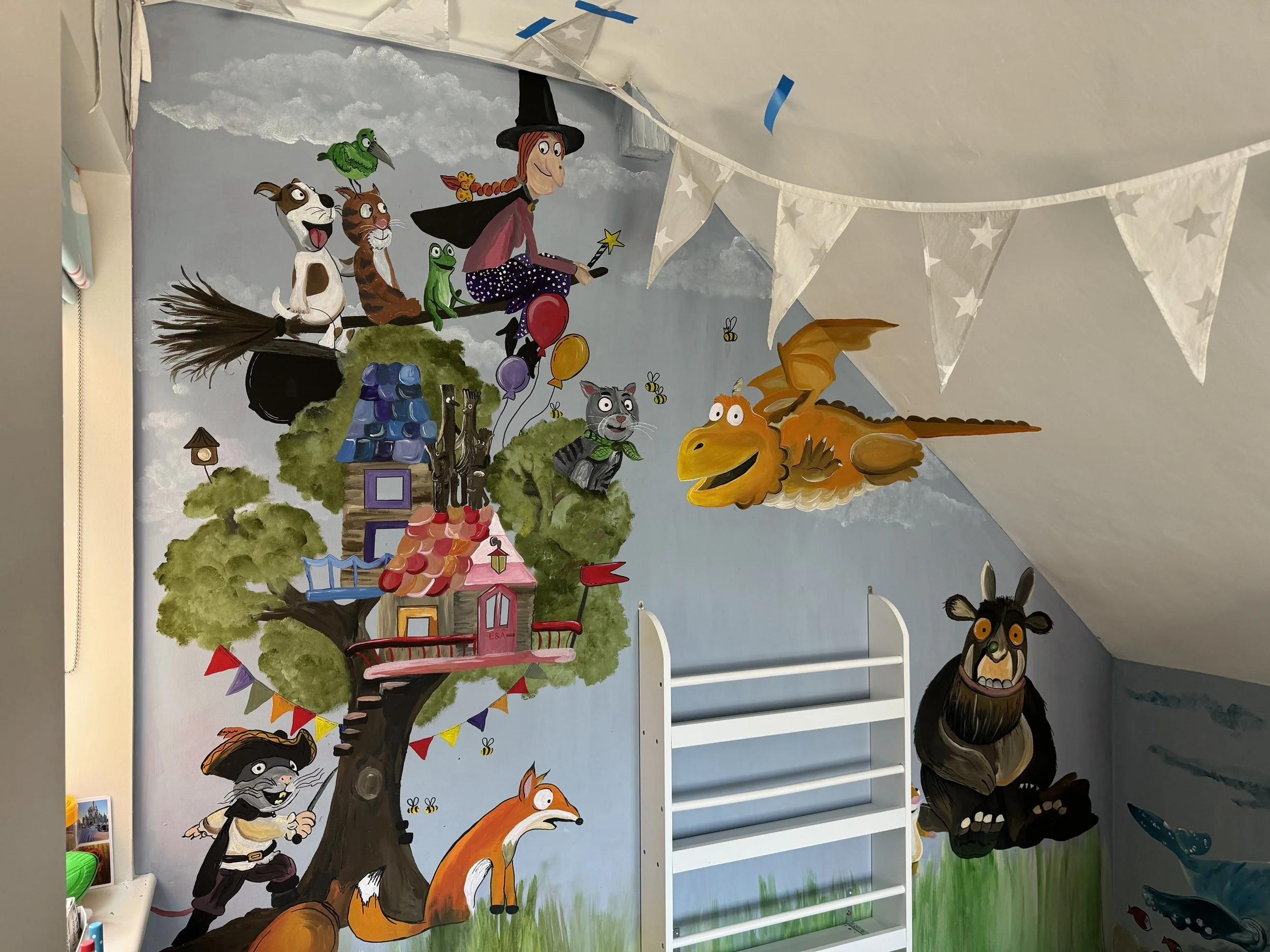 Julia Donaldson Playroom The vision was combining a mixture of the Julia Donaldson book characters to create a cute little reading nook for a child’s playroom